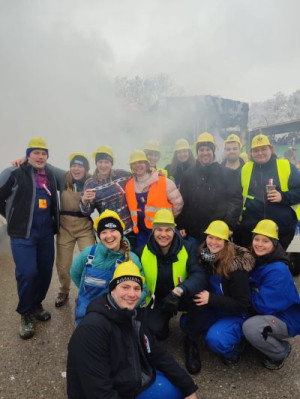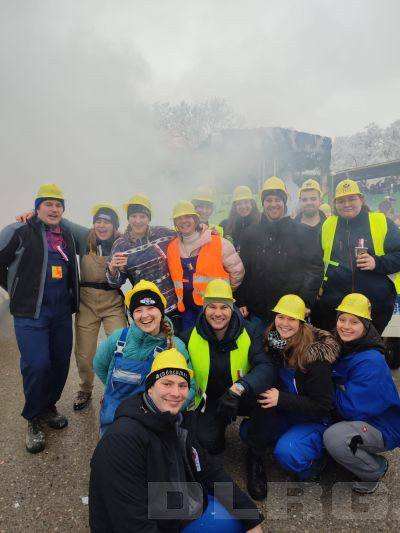 Als Bob der B(l)aumeister verkleidet, starteten wir gemeinsam im Faschingsumzug. Wir machten mit unserer Fußgruppe auf den Neubau des Ausbildungs- und Wasserrettungszentrum aufmerksam.