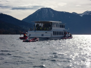 Zu einer Großübung am Tegernsee mit 300 Rettungskräften stiegen Rauschschwaden auf. Bei der Übung wurde ein Großeinsatz auf einem Passagierschiff der Tegernsee Schifffahrt simuliert.